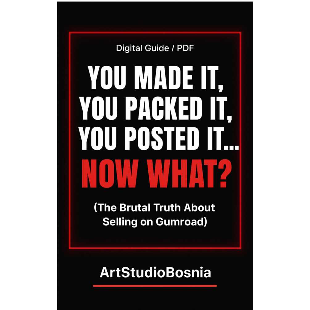 "You Made It, You Packed It, You Posted It… Now What?" is the honest guide every new digital creator needs. Selling online isn’t as easy as it seems. I share my own struggles, lessons, and brutal truths about launching products on Gumroad, from creating to promoting and actually making sales. If you’re starting your digital journey and want a real look at what works—and what doesn’t—this is for you."